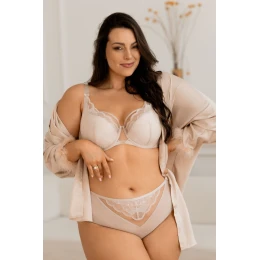 Biustonosz Mediolano Amelia Semi-soft to propozycja dla kobiet, które pragną połączenia elegancji z komfortem. Dzięki konstrukcji semi-soft biustonosz zapewnia doskonałe podtrzymanie i pięknie modeluje biust, subtelnie go unosząc i nadając mu kuszący kształt. Głębokie miseczki zdobione koronką delikatnie wychodzącą poza krawędź dodają całości niezwykłego uroku i podkreślają kobiecość. Regulowane ramiączka i klasyczne zapięcie na haftki pozwalają idealnie dopasować biustonosz do sylwetki. Wykonany z wysokiej jakości materiałów, wnętrze z beżowej bawełny - zapewnia przewiewność i wygodę przez cały dzień.