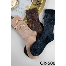 Ponožky QR-5004 od spoločnosti Magnetis sú kombináciou elegancie, pohodlia a módneho vkusu. sú vyrobené z mäkkej bavlny s prímesou elastanu a polyesteru, vďaka čomu dokonale priliehajú k nohe, pričom ich trblietavá priadza je pútavá a dodá vášmu oblečeniu jedinečný nádych. zdobené tromi saténovými mašľami vo farbe zodpovedajúcej farbe látky sú tieto ponožky dokonalým doplnkom k večerným topánkam, lodičkám alebo dokonca k ihličkovým topánkam. K dispozícii sú v rôznych elegantných farbách od klasickej čiernej po teplú béžovú a čokoládovo hnedú.