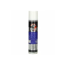 Bufalo Agua Stop je přípravek pro úplnou impregnaci, poskytující účinnou ochranu proti vlhkosti a vhodný pro všechny druhy kůže, textilií a tkanin. Kůže zůstává elastická a umožňuje průchod vzduchu. Impregnace je samozřejmě vhodná i na kožené oděvy. Před použitím odstraňte prach a nečistoty. Hmotu rovnoměrně nastříkejte ze vzdálenosti asi 30 cm. Dávejte pozor, abyste materiál nenamočili. Neleštěte ani nekartáčujte mokrou pokožku!