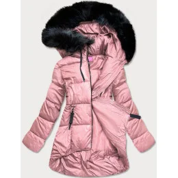 Ružová asymetrická dámska zimná bunda (8953-r)
