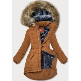 Dámska asymetrická zimná bunda karamelová (m-21301)