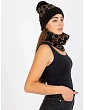 Ťavia a čierna dámska zimná čiapka s bambulou .