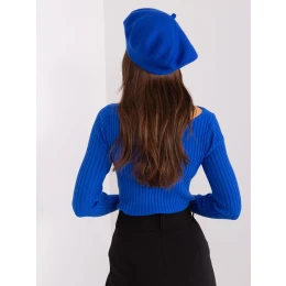 Dámsky jednofarebný baret kobaltovej farby .