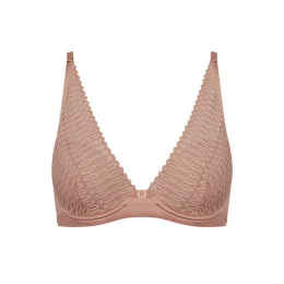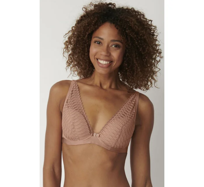 Podprsenka od Triumph. Model 10208018 Aura Spotlight WP. Má dráty, které prsa vhodně tvarují. Výrobek má nastavitelné popruhy bez možnosti odepnutí. Kovové háčky na popruh. Podprsenka se zapínáním na háčky a oči. Upevňovací bod: vzadu. Dvě řady svislých háčků. Tři stupně horizontálních háčků. Výrobek je vyroben z 66 % z polyamidu, 17 % z polyesteru a 17 % z elastanu. Boky vyztužené látkou. Výrobek pro ženy.