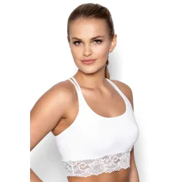 Dámsky športový top. Ušitá z kvalitnej bavlny s prídavkom elastických vlákien. Má tenké, dvojité ramienka, na chrbte skrížené. Spodná časť je zdobená pruhom čipky. Vzadu logo.