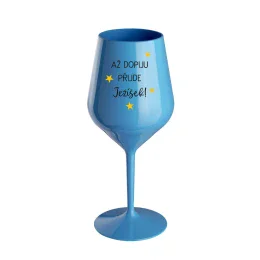 AŽ DOPIJU, PŘIJDE JEŽÍŠEK - modrá nerozbitná sklenice na víno 470 ml