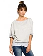 B048 Blúzka nadmernej veľkosti so zavinovacími detailmi - svetlo šedá