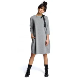 B070 Nadmerné šaty s opaskom na zaväzovanie - sivé