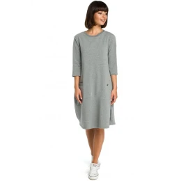 B083 Oversized šaty s predným vreckom - šedé