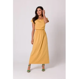 B264 Maxi šaty s elastickým pásom - medové