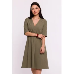 model 19670411 Šaty s výstřihem do V olivově zelené - BeWear