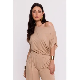92% wiskoza 8% elastan DETAILY PRODUKTU: viskózový úplet blúzka s výstrihom na ramenách krátke netopierie rukávy naša modelka je vysoká 164 cm a nosí veľkosť S navrhnuté a vyrobené v Poľsku