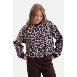 65% polyester 30% wiskoza 5% elastan MATERIÁL Materiál: kartáčovaná pletenina s potiskem, měkká a příjemná na dotek, s jemným vlasem PODROBNOSTI O PRODUKTU Zapínání: žádné - slip-on styl Límec: žádný, kulatý výstřih Kapsy: žádné Rukávy: dlouhé, rozmáchlé, zakončené žebrovanými manžetami Detaily: žebrovaný lem a manžety Podšívka: žádná Model: B303 Navrženo a vyrobeno v Polsku z látky vyrobené v Polsku Modelka na fotografii měří 171 cm a má na sobě velikost S/M STYL A STŘIH Střih: volná, klasická mikina Tvar: rovný, uvolněný, mírně oversized Délka: po boky