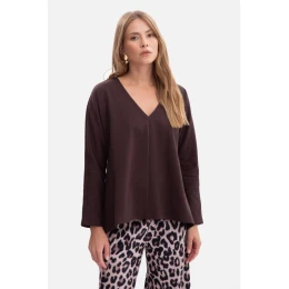B304 Pletený sveter s výstrihom do V - tmavá čokoláda