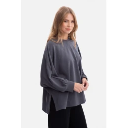 B306 Pletená mikina uvoľneného strihu - oceľová