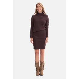 B309 Úpletové blúzkové šaty - tmavá čokoláda