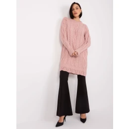 Svetloružové dámske pletené šaty s dlhými rukávmi.