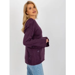 Tmavo fialový dámsky oversize sveter s dierami .