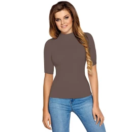 Blúzka značky Babell, model Layla, vyrobená z 94 % viskózy, 6 % elastanu, dĺžka rukávov: krátke, výstrih: stojatý golier, dámsky výrobok.