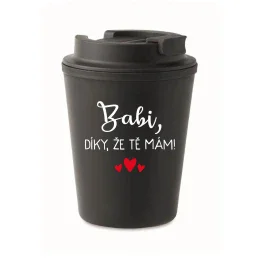 mohrnek "Humor na Cestách" - Pro Vaše Teplé Momenty Kdekoli Objevte náš stylový termohrnek s nápisem BABI, DÍKY, ŽE TĚ MÁM!, který je ideální pro milovníky kávy a čaje s vtipným smyslem pro humor! Tento praktický a trendy termohrnek vám umožní vychutnávat váš oblíbený teplý nápoj kdekoli a kdykoli, a to s úsměvem na tváři díky jeho vtipnému nápisu. S objemem ideálním pro vaši ranní kávu nebo odpolední čaj, tento termohrnek udrží váš nápoj teplý po dlouhou dobu, zatímco vy se můžete věnovat svým každodenním aktivitám. Jeho robustní konstrukce zajišťuje, že váš nápoj zůstane bezpečný a teplý, ať už jste v práci, na výletě nebo jen na procházce. Termohrnek je navíc vyroben z odolných materiálů, které zaručují dlouhodobou použitelnost a snadnou údržbu. Jeho ergonomický design a zapečetěné víčko znamenají, že ho můžete vzít s sebou kamkoli bez obav z rozlití. Udělejte si radost tímto originálním termohrnkem nebo ho darujte jako perfektní dárek pro vaše přátele a rodinu, kteří oceňují dobrý humor spolu s kvalitním nápojem. Objednejte si ho nyní a začněte každý den s úsměvem! Doporučujeme ruční mytí tohoto produktu pro zachování jeho kvality a trvanlivosti. Nedoporučujeme umisťovat do myčky na nádobí.