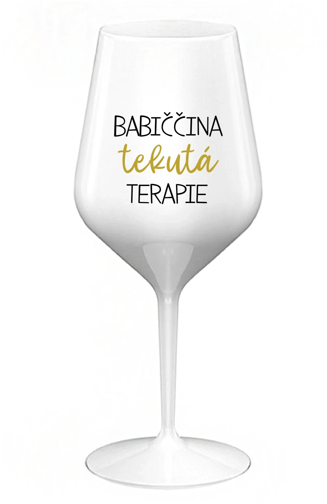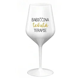 BABIČČINA TEKUTÁ TERAPIE - bílá nerozbitná sklenice na víno 470 ml