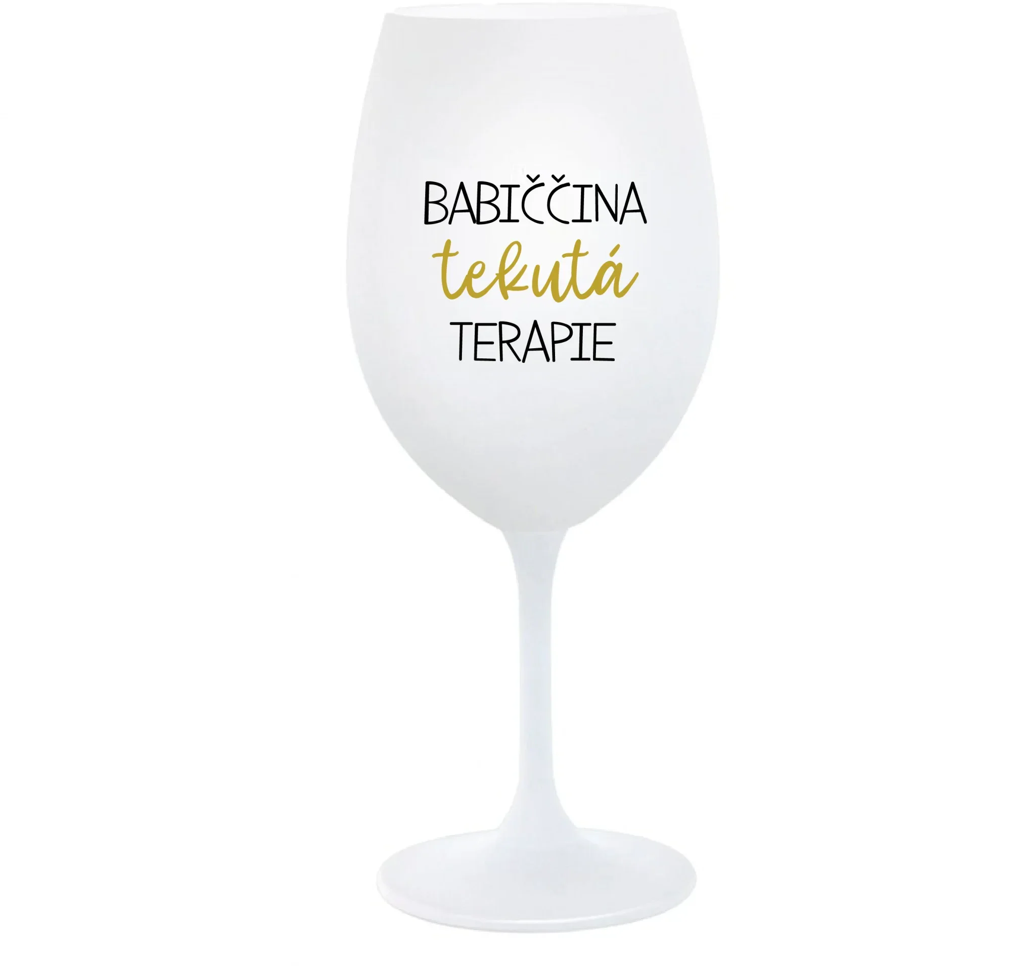 BABIČČINA TEKUTÁ TERAPIE - bílá sklenice na víno 350 ml