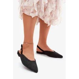 Elegantné dámske baleríny s prúžkom. Umiestnené na plochej podrážke. Vystavený podpätok a špicatá špička dodávajú jemný ženský charakter. Zapínanie pomocou nastaviteľného remienka s prackou, ktorý umožňuje dokonalé prispôsobenie sa nohe. Mäkká stielka z ekologickej kože zaručuje pohodlie počas celého dňa. Ideálne na jar a leto, perfektne sa hodia k šatám, sukniam a nohaviciam a dodajú štýl každému outfitu.