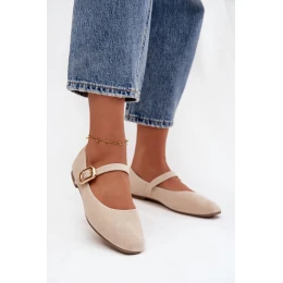 Dámske baleríny z mäkkého eko-semišu. Model s nízkym podpätkom zaručuje pohodlie počas celého dňa a jemne zaoblená špička dodáva celku jemný ženský charakter. Na priehlavku je pásik so zlatou prackou, ktorý upúta pozornosť a dodáva elegantný vzhľad. Mäkká stielka zaručuje pohodlie pri chôdzi. Ide o klasické a zároveň štýlové baleríny, ktoré sa hodia do mnohých štylizácií od každodenných až po elegantnejšie. Ideálne do práce, na stretnutia alebo na prechádzky.