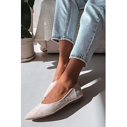 Dámske baleríny z eko-semišu sú štýlovou a pohodlnou ponukou na každý deň. Plochý strih zaručuje pohodlie pri nosení, vďaka čomu sa model skvele hodí počas dlhodobého používania. Špicatá špička opticky zjemňuje chodidlo a dodáva celku elegantný charakter. Mäkká stielka zvyšuje komfort, prispôsobí sa chodidlu a zaručuje pohodlie počas celého dňa. Je ideálnou voľbou pre ženy, ktoré ocenia kombináciu klasiky, pohodlia a nenápadnej elegancie. materiál umelý semiš