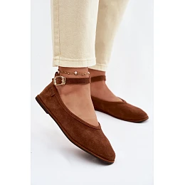 Dámske baleríny Big Star z prírodného semišu sú elegantným modelom so ženským charakterom. Mäkký semišový zvršok poskytuje pohodlie a štýlový vzhľad. Topánky majú plochú podrážku, ktorá prispieva k pohodliu pri chôdzi. Zaoblená špička poskytuje voľnosť pre prsty a remienok okolo členka so zlatou prackou je decentným ozdobným prvkom a pomáha prispôsobiť topánku nohe. Ide o štýlový dizajn, ktorý doplní každodenné a elegantné oblečenie.