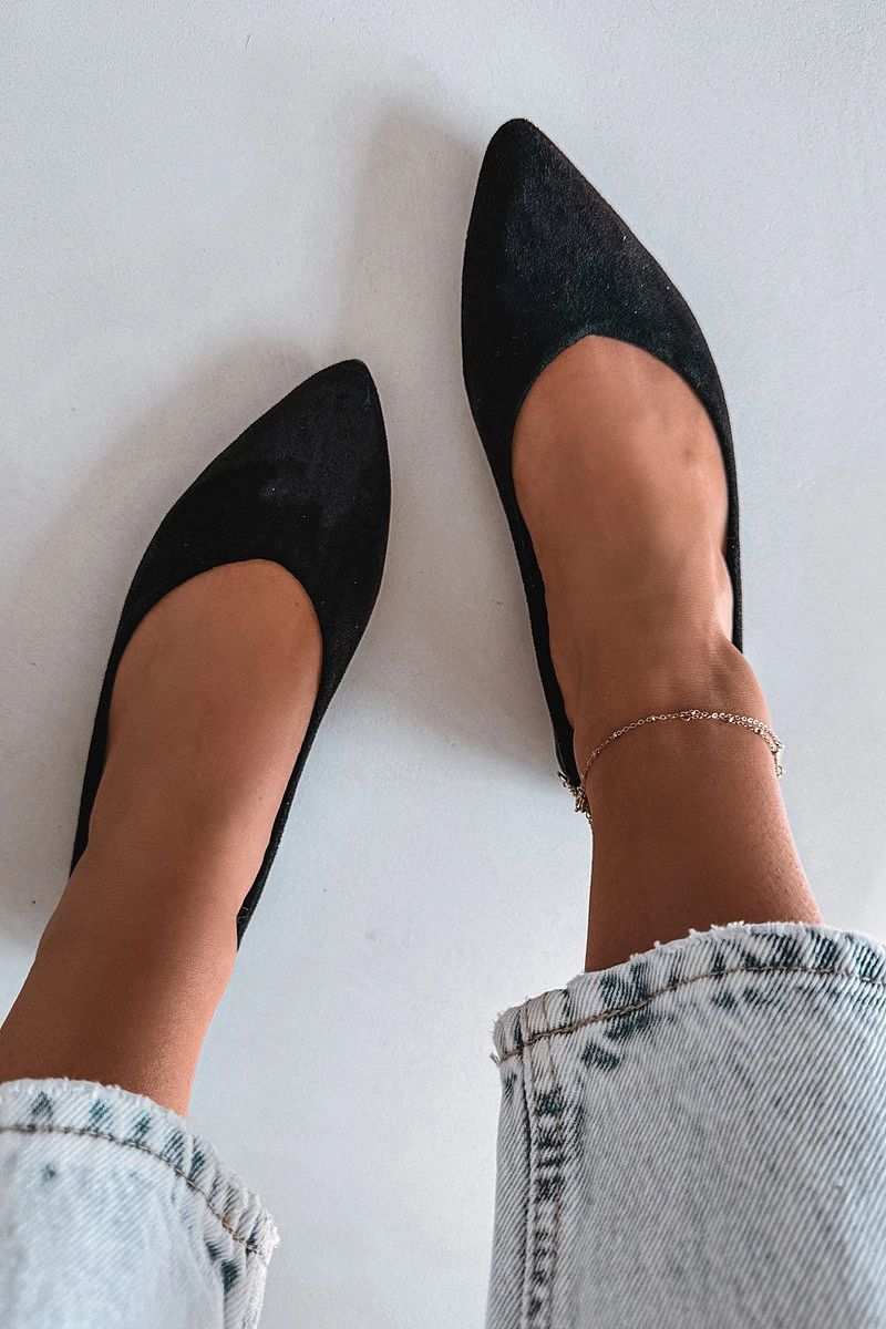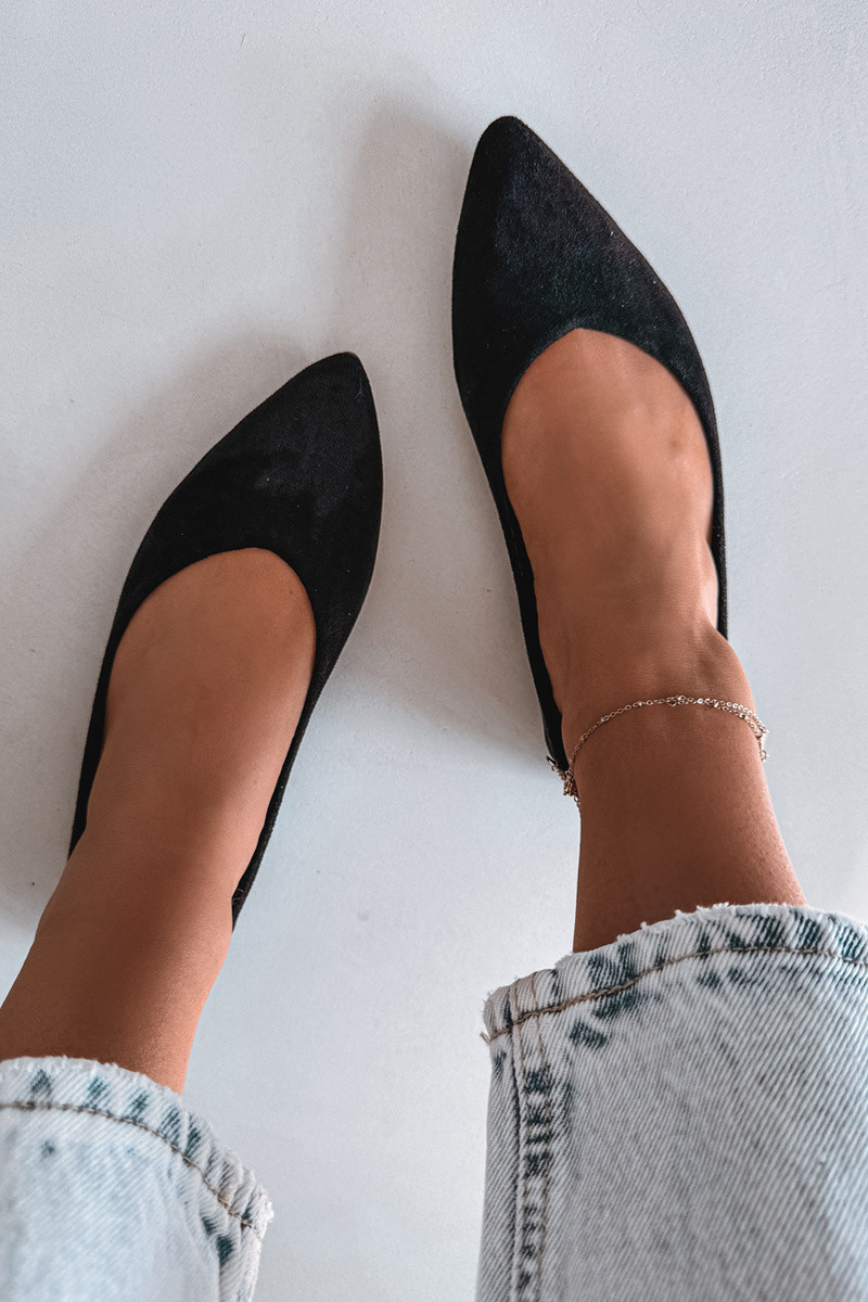 Dámské baleríny z eko semiše jsou stylovou a pohodlnou volbou na každý den. Plochá podrážka zajišťuje pohodlí při nošení, díky čemuž je model ideální na dlouhodobé používání. Špičaté nosy opticky zeštíhlují nohu a dodávají celkovému vzhledu elegantní charakter. Měkká vložka zvyšuje komfort, přizpůsobuje se noze a poskytuje pohodlí po celý den. Ideální volba pro ženy, které ocení spojení klasiky, pohodlí a jemné elegance. Při výběru velikosti se řiďte tabulkou velikostí.