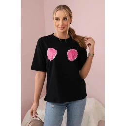 Bavlněná halenka s květinovým potiskem černý