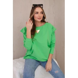 Bavlněná halenka s volánky na ramenou jasně zelená