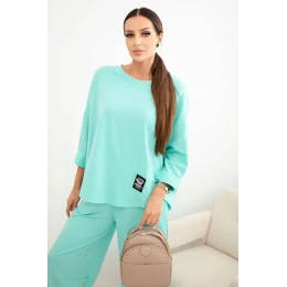 Bavlnená mikina + nohavice tmavá mentolová
