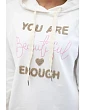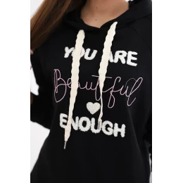 Táto bavlnená mikina s kapucňou a nápisom "Beautiful" je jedinečným kúskom oblečenia, ktorý dodá šarm a výraznosť každému štýlu. Táto mikina je vyrobená z vysokokvalitnej bavlny a zaručuje nielen pohodlie pri nosení, ale aj odolnosť a komfort. Kapucňa dodáva charakter a praktickosť a poskytuje ochranu pred chladom a vetrom. Nápis "Beautiful" dodáva mikine jedinečné posolstvo, pozitívnu energiu a sebavedomie. Je to ideálna voľba pre ľudí, ktorí chcú prostredníctvom svojho šatníka vyjadriť svoju krásu a individualitu. Veľkosť je univerzálna a je vhodná pre ženy, ktoré nosia veľkosť S, M alebo L.