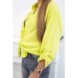 Mušelínová košeľa je esenciou pohodlia a nadčasovej elegancie. Je vyrobená z ľahkého, priedušného mušelínu, je ideálna na každé ročné obdobie a zaručuje pohodlie pri nosení a voľnosť pohybu. Jej univerzálny strih je ideálny na každodenné aj formálne outfity. Jemná štruktúra materiálu dodáva košeli jemný pôvab a precízne spracovanie podčiarkuje vysokú kvalitu dizajnu. Mušelínová košeľa je povinnou výbavou pre tých, ktorí oceňujú kombináciu klasického a moderného štýlu. Veľkosť je univerzálna a bude vhodná pre ženy nosiace veľkosti S, M alebo L.