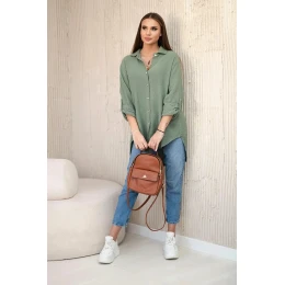Bavlněná mušelínová košile oversize khaki