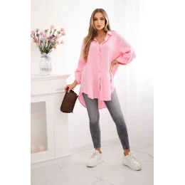 Bavlněná mušelínová košile Plus Size bonbónově růžová