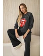 Táto súprava zo spranej bavlny s potlačou, ktorá pozostáva z mikiny a nohavíc, je štýlovou a pohodlnou voľbou na každodenné nosenie. Je vyrobená z mäkkej, vysokokvalitnej bavlny a zaručuje pohodlie pri celodennom nosení. Obnosený efekt dodáva súprave módny, mierne vintage charakter a potlač jej dodáva jedinečný štýl. Mikina voľného strihu sa dokonale hodí ku nohaviciam, ktoré majú pohodlný elastický pás a poskytujú voľnosť pohybu. Táto súprava je ideálna na relaxáciu doma, ako aj na bežné výlety a vytvára módny a pohodlný vzhľad. Veľkosť je univerzálna a bude vhodná pre ženy, ktoré nosia veľkosť S, M alebo L.