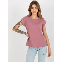 Bavlnené dámske tričko v špinavej ružovej farbe s vyhrnutými rukávmi Feel Good (4833-35)