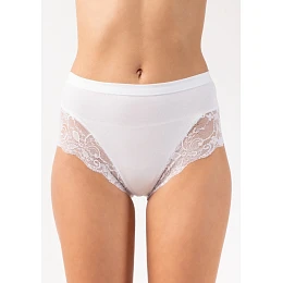 Dámske nohavičky v obľúbenom vyššom strihu od značky Jadea. Predná hladká časť nohavičiek je doplnená jemnou elastickou čipkou. Zadná časť je hladká. Materiálové zloženie: 45 % bavlna, 45 % modal, 10 % elastan