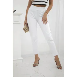 Bavlnené nohavice so zirkónmi na zadných vreckách biele