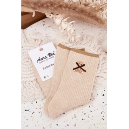 Bavlněné ponožky pruhované s medvídkem Béžové