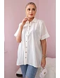 Toto bavlnené tričko s krátkymi rukávmi je ideálnou voľbou na teplé dni a spája eleganciu s pohodlím. Tričko z kvalitnej bavlny poskytuje nielen príjemný pocit na pokožke, ale aj dobré vetranie a voľnosť pohybu. Krátke rukávy dodávajú košeli ľahkosť a ležérny charakter, takže je ideálna do práce, na neformálne stretnutia alebo do spoločnosti. Vďaka univerzálnemu strihu je bavlnené tričko s krátkymi rukávmi nepostrádateľnou súčasťou šatníka každej ženy, ktorá si cení štýl a pohodlie. Veľkosť je univerzálna a je vhodná pre ženy, ktoré nosia veľkosť S, M alebo L.