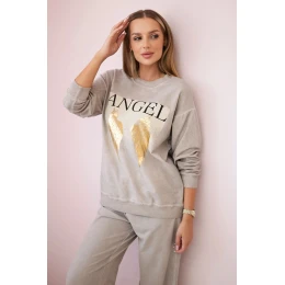 Bavlnená súprava Angel pozostávajúca z mikiny a nohavíc je dokonalou kombináciou štýlu a pohodlia. Je vyrobená z mäkkej, vysokokvalitnej bavlny, ktorá zaručuje pohodlie pri celodennom nosení. Obnosený efekt dodáva súprave módny, mierne vintage vzhľad, ktorý vynikne pri každodennom stylingu. Mikina má voľný strih, ktorý sa dokonale kombinuje s pohodlnými nohavicami s elastickým pásom. Súprava je ideálna na dni oddychu doma alebo vonku a ponúka štýlový, ležérny vzhľad. Veľkosť je univerzálna a bude vyhovovať ženám veľkosti S, M alebo L.