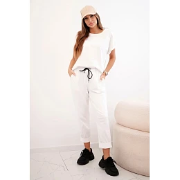 Bavlněný komplet halenka + kalhoty bílý