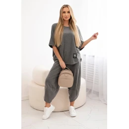 Bavlněný komplet halenka + kalhoty Grafit