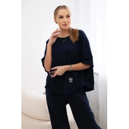 Bavlněný komplet halenka + kalhoty námořnická modř