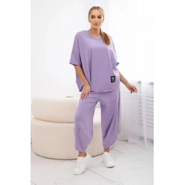 Súprava bavlnená blúzka + nohavice svetlo fialová