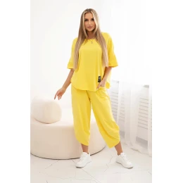 Italská souprava je kombinací elegance a pohodlí, která se dokonale hodí k mnoha příležitostem. Tato látka je nejen měkká a příjemná na dotek, ale také krásně vypadá. Halenka je dokonalým kouskem oblečení jak na každý den, tak na zvláštní příležitosti. Můžete jej nosit samostatně nebo kombinovat s jiným kouskem oblečení a vytvořit tak mimořádně stylový outfit. Kalhoty jsou perfektním doplňkem soupravy. Jejich volný střih umožňuje volnost pohybu, díky čemuž jsou nejen stylové, ale také velmi pohodlné. Při výběru kalhot volíte pohodlí a eleganci v jednom. Italský set je vynikající volbou pro ty, kteří oceňují vysokou kvalitu a jedinečný styl. Ať už jdete na schůzku s přáteli, do práce nebo na večer, s touto sadou budete jistě vyčnívat z davu. Velikost je univerzální a padne ženám, které nosí velikost S, M nebo L.